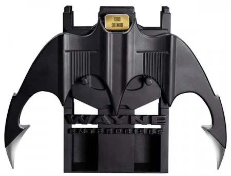 Die 89er Batarang-Replik ist mit einem Wayne Tech gebrandeten Display-Ständer ausgestattet, komplett mit einem filmspezifischen Namensschild. Wenn Sie bereits mit Ihrer „Through the Ages“-Batarang-Sammlung begonnen haben, können Sie diesen Batarang zusammen mit einem anderen Batarang von Ikon Design Studio ausstellen (jeder Batarang ist separat erhältlich). Alternativ kann dieser Batarang auch allein auf dem mitgelieferten Wayne Enterprises-Ständer aufgestellt werden.