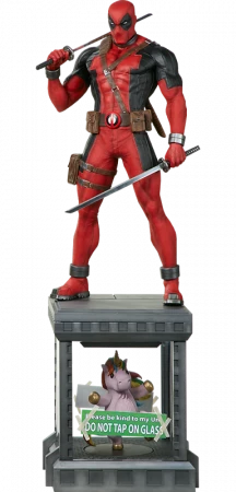 Die Deadpool 1:3 Scale Statue kommt mit mehr Display-Optionen als Toppings an einem Taco-Truck, so dass Sie endlich ein leuchtendes Mittelstück für Ihren nicht ganz so geheimen Deadpool-Schrein haben können. Auf dem silbernen Standard-Sockel ist Deadpool 24″ groß und bereit, in der Arena gegen andere Champions anzutreten. Manche Helden kämpfen für Ruhm oder Gerechtigkeit – aber Wade Wilsons Motivation ist kein anderer als sein Lieblingseinhorn, Uni. Wenn Deadpool seine ultra-mega-geile Einhorn-Vitrinenbasis bewacht, misst dieses Marvel-Sammlerstück satte 38″ Höhe und 12″ Breite. Die komplette Basis enthält eine drehbare Uni-Figur, beleuchtete Funktionen und abnehmbare Klatschschilder, um alle hinterhältigen Diebe abzuschrecken.